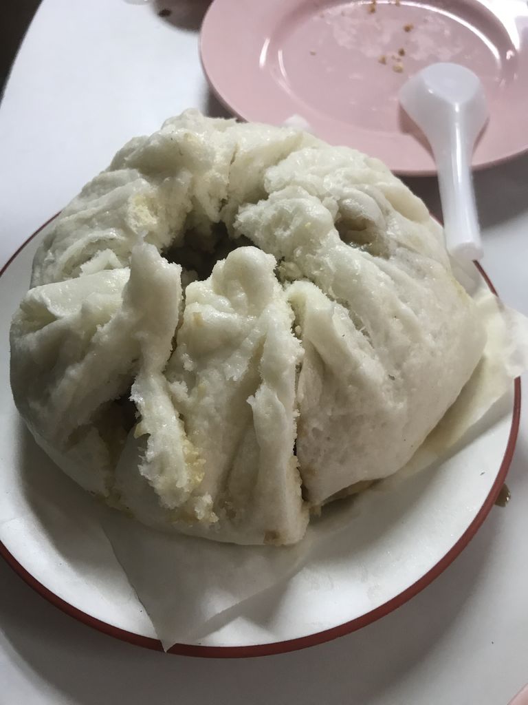 でか肉まん。具材はゆで卵、チキンの塊、肉の餡。美味しい。底の皮は絶対に剥がれる。