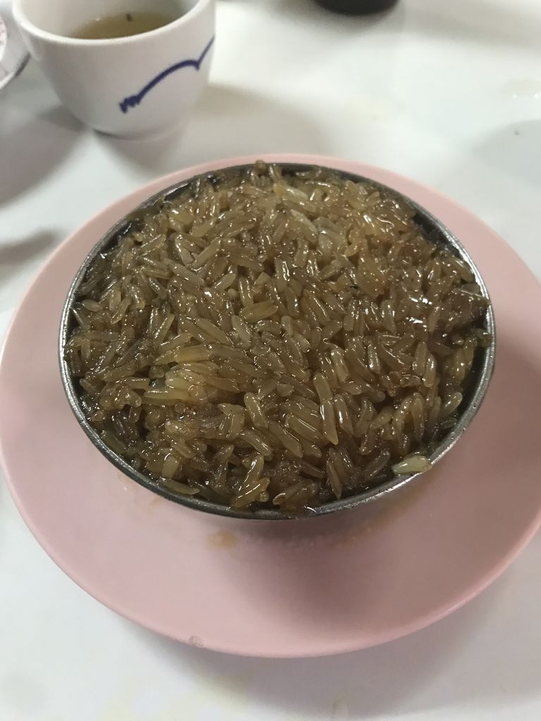 チキンライス。コメはもち米でもちもち。中にはチキンとゆで卵が入っていました。