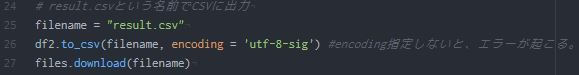 result.csvという名前でCSVに出力
